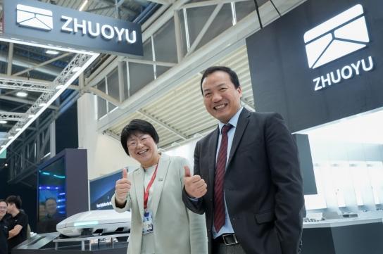 中国驻慕尼黑总领馆经商处负责人郭方参赞(右一)到访卓驭展台